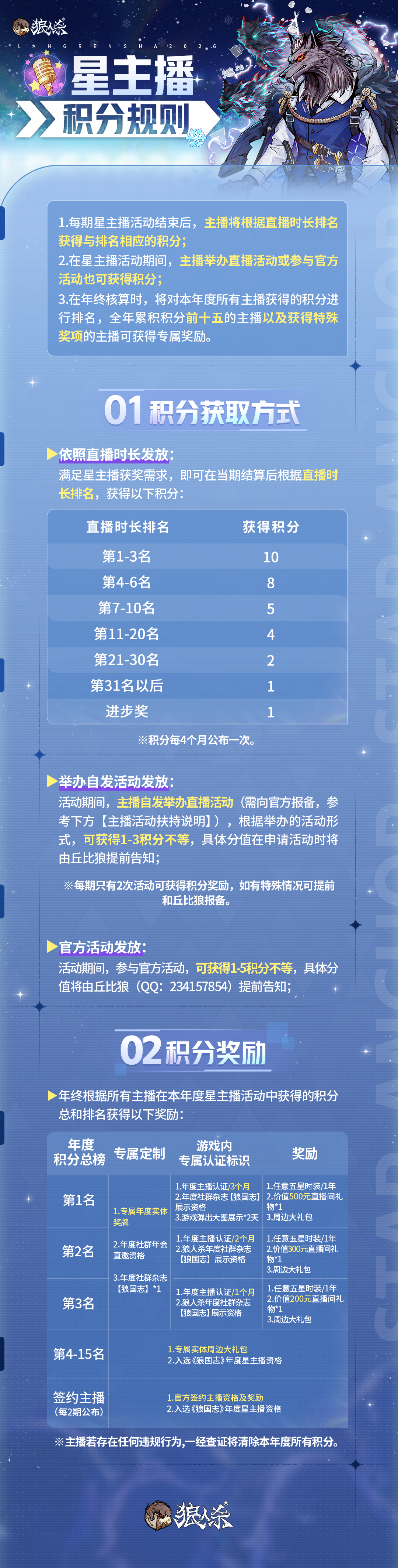9、主播若存在任何违规行为,一经查证将清除本年度所有星主播积分。