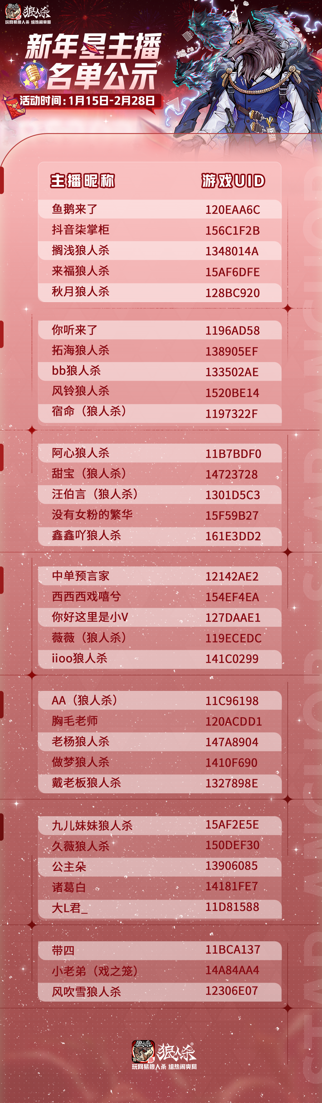 2026年狼人杀官方春季星主播官方公告
