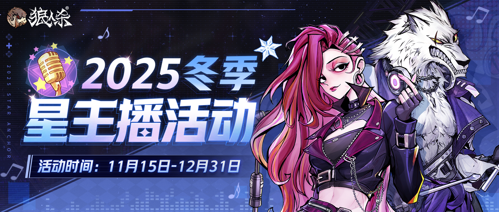 2025年狼人杀冬季主播活动全新升级,狼人杀官方星主播荣誉身份、官方全平台推荐资源、宝贵的扶持成长机会以及游戏钻石奖励等你来拿。