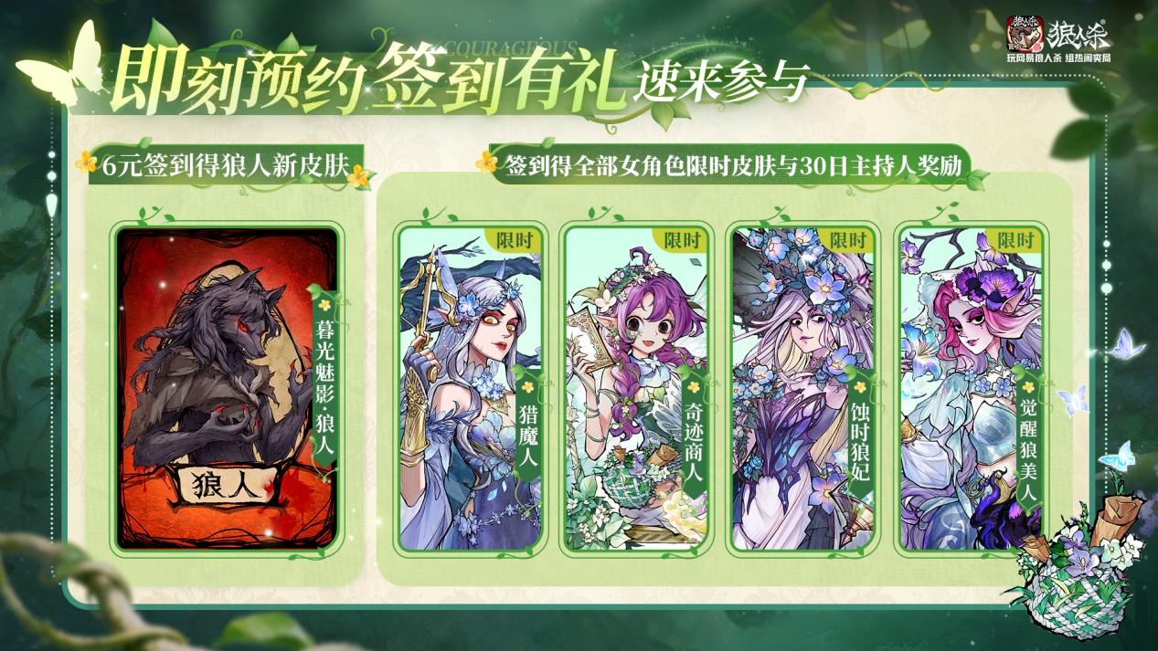 即日起参与签到活动,6元签到即可解锁狼人新皮肤“暮光魅影·狼人”。活动期间参与每日祝词活动,连续签到更可获得全部女性角色限时皮肤奖励,并可额外获取30日主持人奖励。海量福利,尽在网易狼人杀“她”说活动。