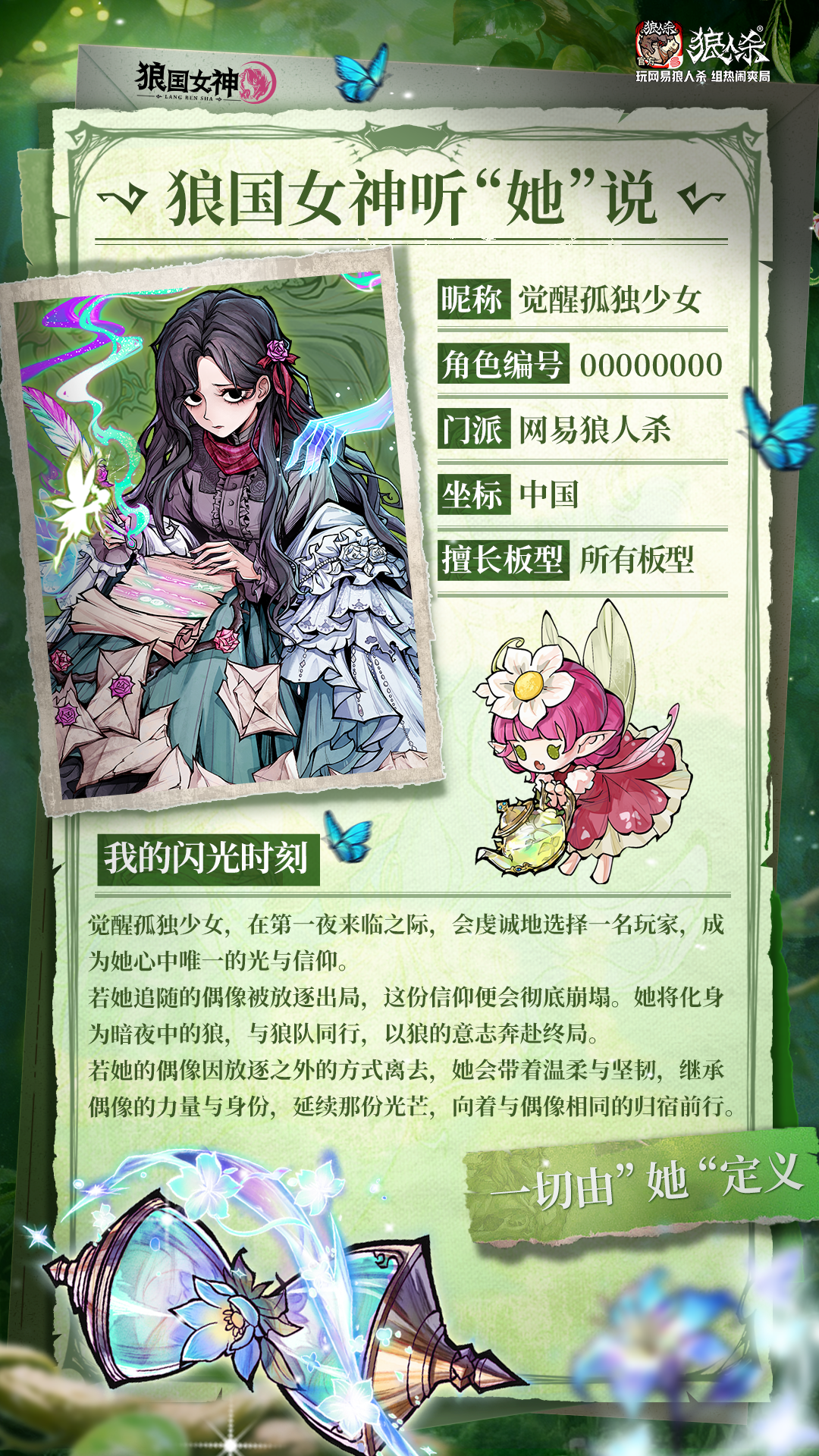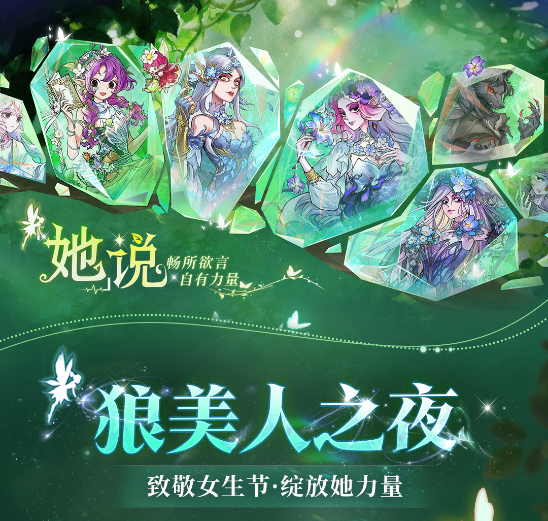 所有热爱皆可绽放,每一份勇敢都值得喝彩!3 月 5 日狼国女神活动正式开启,无论是想展示自我的女神玩家,还是想为闪光女性助力的小伙伴,都快来加入这场盛宴!一起见证女性力量的绽放,在狼人杀的世界里,遇见更耀眼的自己与彼此!