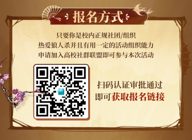 狼人杀官方诚邀全国各大高校社团或组织加入狼人杀高校联盟,成为本次校园行活动的承办方,带领同学们一起感受狼人杀的魅力。申请成功后,还可领取专属社团活动资金及海量周边扶持,解锁非遗合作证书,为社团履历添彩。